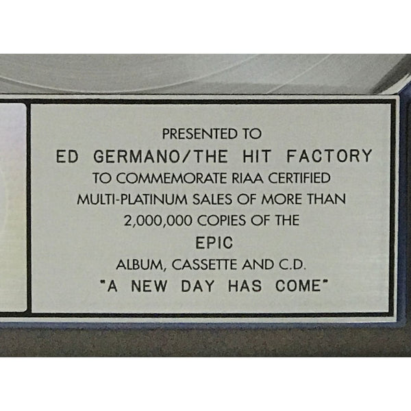 RIAA 2x Multi-Platinum Award for the Celine Dion album A New Day Has Come. Released on Mar. 26, 2002, the album was certified 2x Multi-Platinum by the RIAA for two million copies sold a month later on April 25.