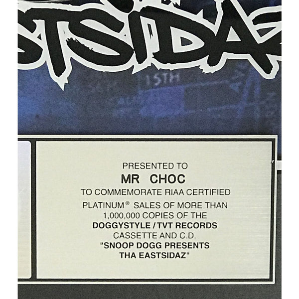 RIAA Platinum Album Award for Tha Eastsidez album Snoop Dogg Presents Tha Eastsidez. The album was released on Feb. 1, 2000 and by Oct. 11 that year was certified Platinum by the RIAA.*