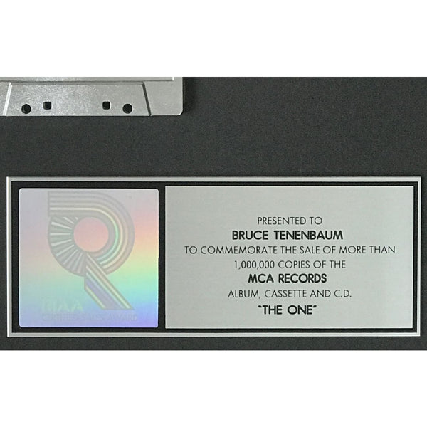Detailed Item Description: This is a RIAA Platinum award that was manufactured in 1992, making it approx. 34 years old. It is presented to Bruce Tenenbaum, who was a MCA Records promotions executive at the time.