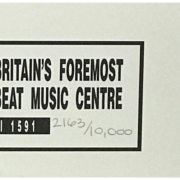 Limited edition (#2,163 of 10,000 pieces) framed collage containing a photo poster of the Beatles outside the Cavern Club in Liverpool with original drummer Pete Best, signed by Best. Best was of course the Beatles original drummer, playing with the group from 1960-62, after which he was replaced by Ringo Starr. These pieces were made in 1995 and are hard to find today.