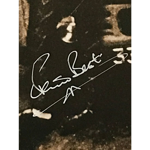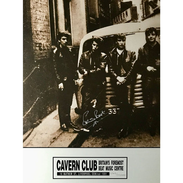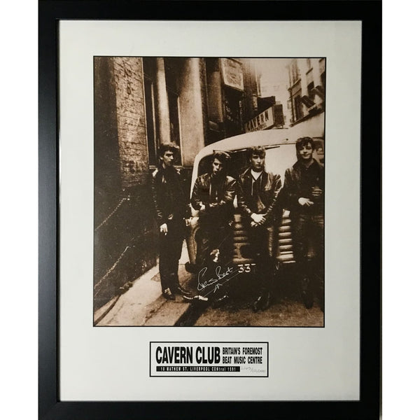 - Certified autograph in silver marker of original Beatles drummer Pete Best on classic photo of the group outside the Cavern Club