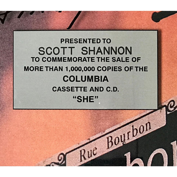 Detailed Item Description: This RIAA Platinum Album award was manufactured in 1995, making it approximately 30 years old. It is presented to well-known radio personality and executive Scott Shannon, who was on air at WPLJ, KQLZ Pirate Radio Los Angeles, Z100 New York and many other stations. A letter of provenance from Shannon will be provided with purchase (see image) .