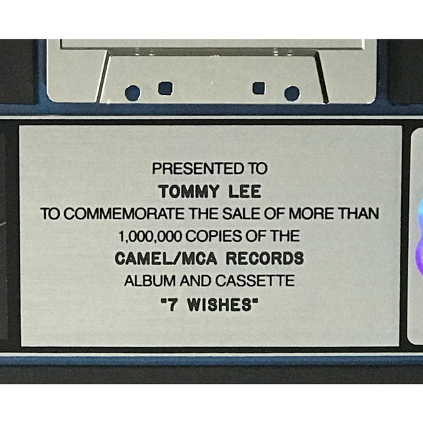RIAA Platinum LP award for Night Ranger album 7 Wishes presented to and signed by Mötley Crüe drummer/songwriter Tommy Lee. Released on May 20, 1985, the album was certified Platinum by the RIAA on Nov. 15, 1985 for one million copies sold.