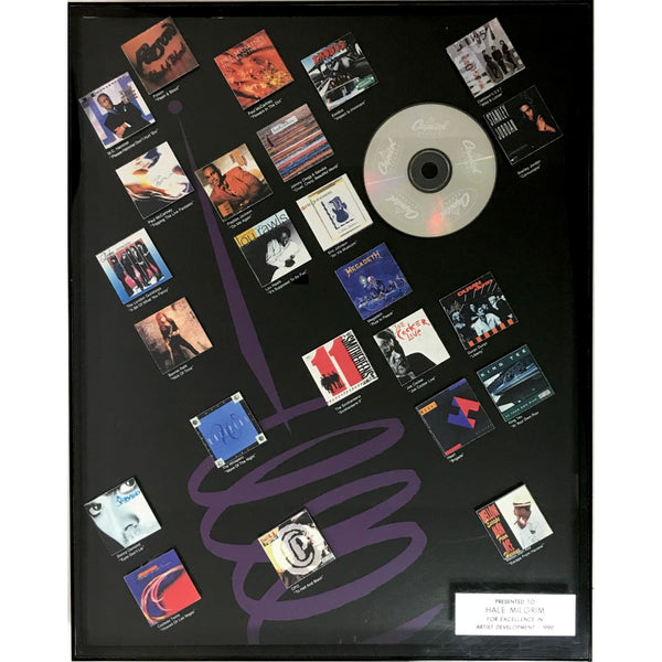 Detailed Item Description: This Capitol Records combo award was made in 1990, making it about 36 years old. It is presented to then Capitol Records President/CEO Hale Milgram.