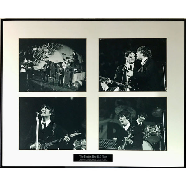Beatles Rare 1964 First U.S. Tour Four-Photo Collage. MusicGoldmine acquired the exclusive rights to a set of rare photographs of the Beatles on their first full U.S. tour. The photos were shot on August 27, 1964 at Cincinnati Gardens, Cincinnati, Ohio, which was the seventh stop on the Fab 4's 25-date U.S. tour, a run which kicked off Beatlemania in the USA.