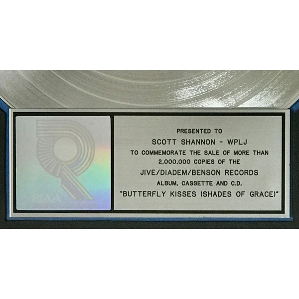 RIAA 2x Multi-Platinum Album Award for Bob Carlisle Butterfly Kisses (Shades Of Grace) album in new condition. Released on April 1, 1996, the album was certified 2x Multi-Platinum by the RIAA for two million copies sold on July 23, 1997.*