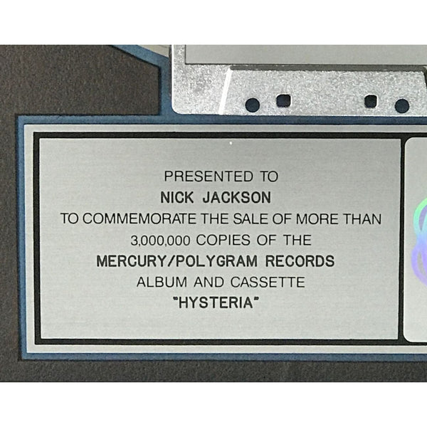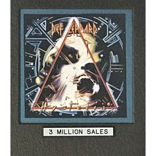 RIAA 3x Multi-Platinum Album award for Def Leppard album Hysteria. Released on August 3, 1987, the album was certified 3x Multi-Platinum by the RIAA on Jan. 14, 1988 for three million copies sold.