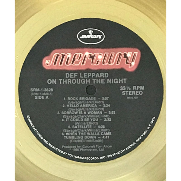 RIAA Gold Album Award for Def Leppard album On Through The Night presented to guitarist Steve Clark. Released on Mar. 26, 1980, the album was certified Gold by the RIAA for 500,000 copies sold on Nov. 18, 1983. Remember late Def Leppard guitarist Steve Clark (1960-1991) with this award.