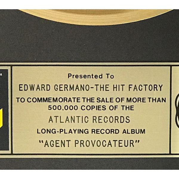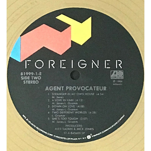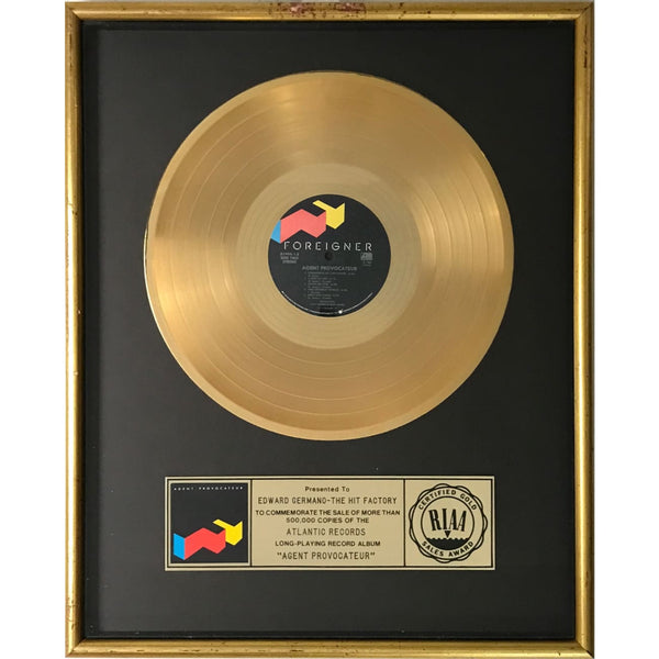 RIAA Gold Album Award for Foreigner album Agent Provocateur. Released on Jan. 28, 1985, the album was certified Gold by the RIAA for 500,000 copies sold on Feb. 11, 1985.
