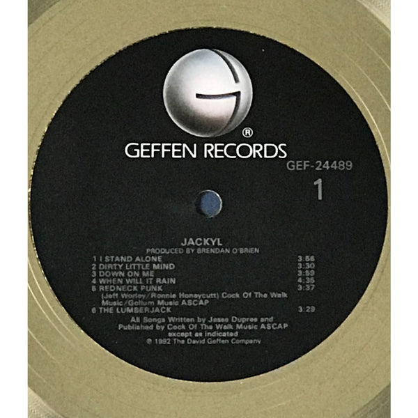 RIAA Gold Award for Jackyl self-titled debut album. Released on Aug. 11, 1992 it was certified Gold by the RIAA on June 23, 1993 for 500,000 copies sold.