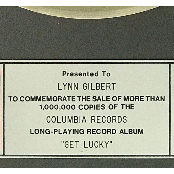 Detailed Item Description: This is a RIAA Platinum Album award that would have been manufactured in 1982, making it approx. 43 years old. It is presented to Lynn Gilbert. It is not known what role Gilbert played in the creation or promotion of the record.
