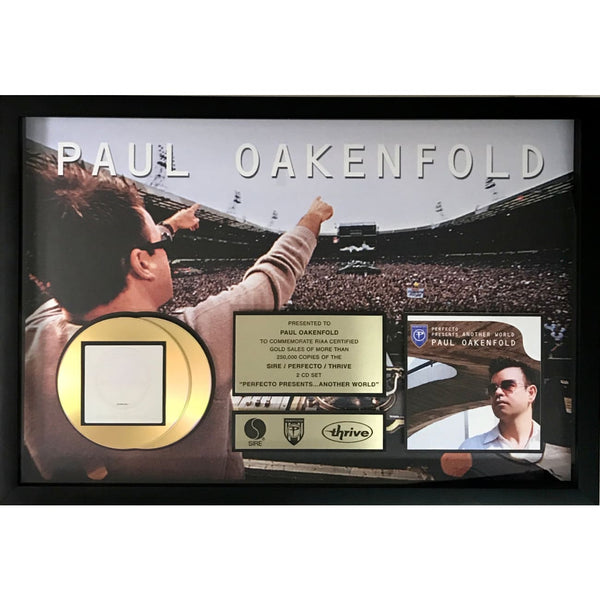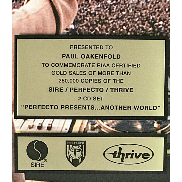 RIAA Gold Album Award for Paul Oakenfold 2 CD Box Set Perfecto Presents: Another World. Released on Sept. 19, 2000, as sometimes happens especially for box sets and various artists releases data on the album's RIAA certification cannot be found on their website but this award came from Oakenfold's personal sale of his awards.