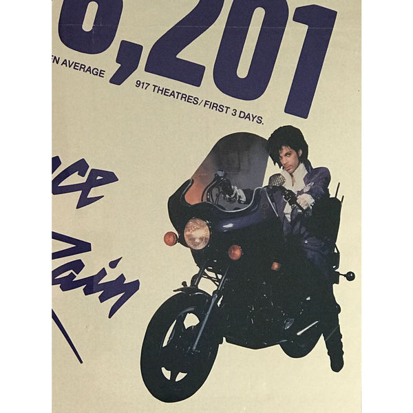 - Poster-mounted 1984 Purple Rain film ad from Variety